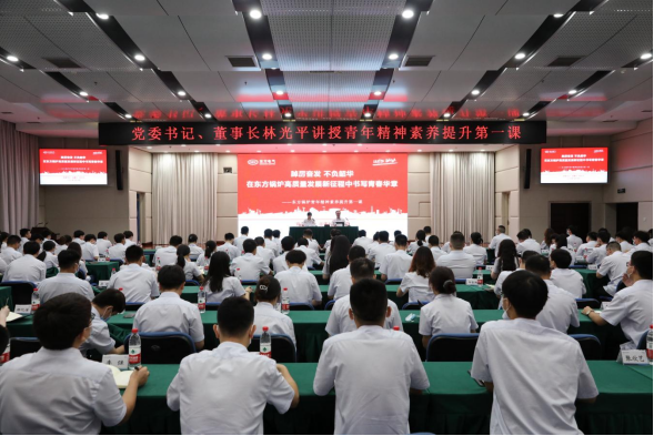 东方汽轮机党委书记、董事长刘辉以《传承红色基因担当强国使命争当时代先锋》为题,为团员青年讲授青年精神素养提升“第一课”。课上带领广大团员青年回顾了100年来党领导中国青年运动的光辉历程,重温了东汽筚路蓝缕的发展史,并勉励大家要传承弘扬“东汽精神”,向英雄学习,向前辈学习,向榜样学习,争做堪当美好新东汽建设重任的时代新人,在实现中华民族伟大复兴的时代洪流中踔厉奋发、勇毅前进。