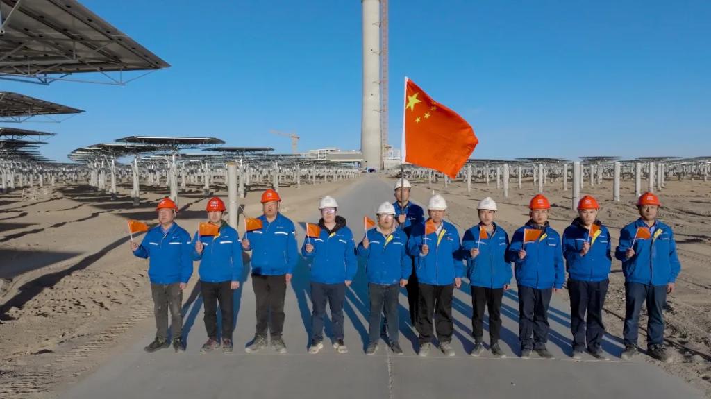 2024年1月,全部11960面五边形定日镜完成安装。2024年11月,成功实现聚光集热系统首次热态升温运行(熔盐上塔)。